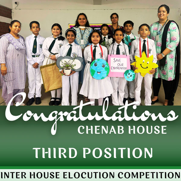 The young orators captivated the audience with their confident delivery and impactful messages. After a tough competition, Satluj House claimed the 1st position, followed by Yamuna House in 2nd, and Chenab House in 3rd place.