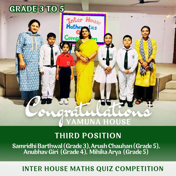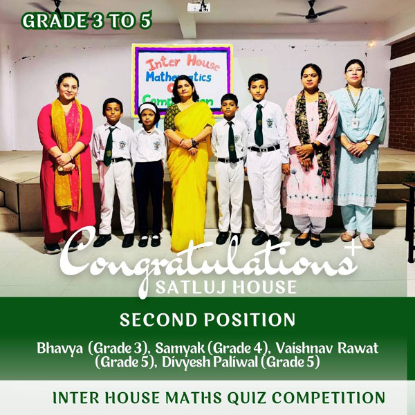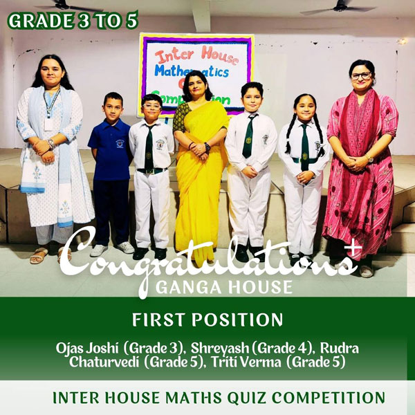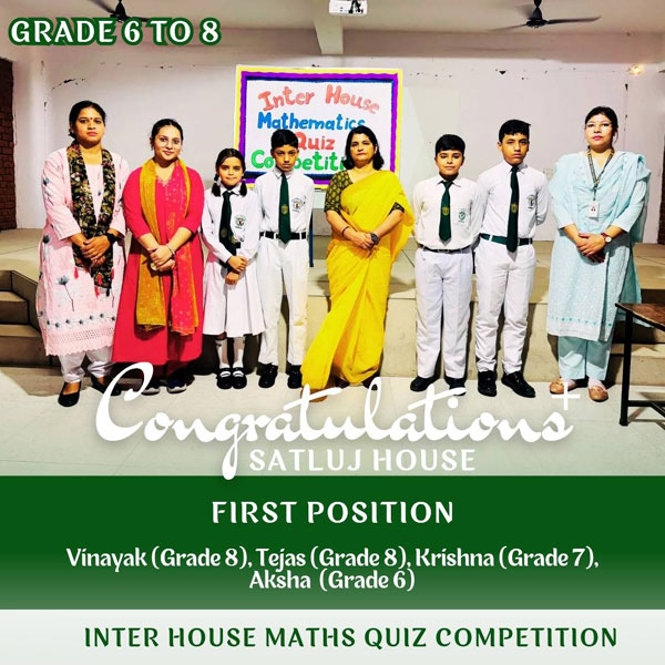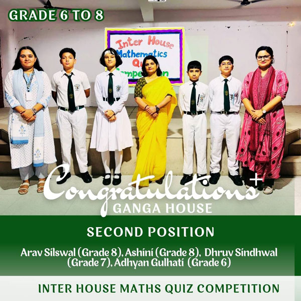 The Inter-House Mathematics Quiz, held on 19th July 2025, was a showcase of logical thinking, numerical aptitude, and teamwork. Students from Grades 3 to 12 participated enthusiastically, representing the four houses — Ganga, Yamuna, Satluj, and Chenab.